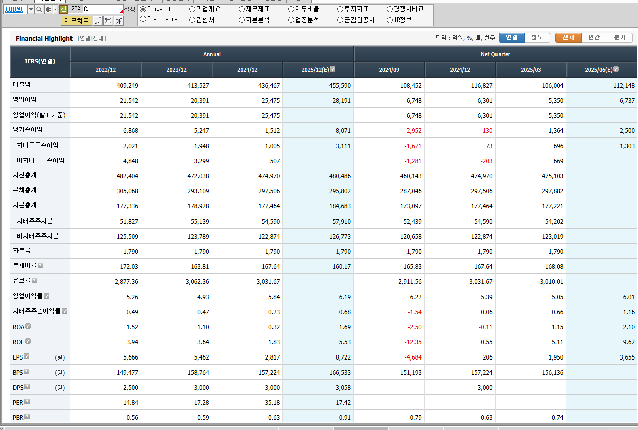CJ(주)는 1953년 삼성그룹의 제일제당으로 출발해, 1993년 삼성에서 계열 분리된 이후 식품, 바이오, 물류, 미디어, 엔터테인먼트 등 다양한 산업으로 확장한 종합 생활문화기업입니다. CJ그룹은 CJ(주)를 중심으로 각 계열사가 독립 경영 체제를 구축하고 있으며, ‘건강, 즐거움, 편리함’을 핵심 가치로 삼고 있습니다.